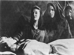 The climax, with the huge, backlit cross and burning witches.